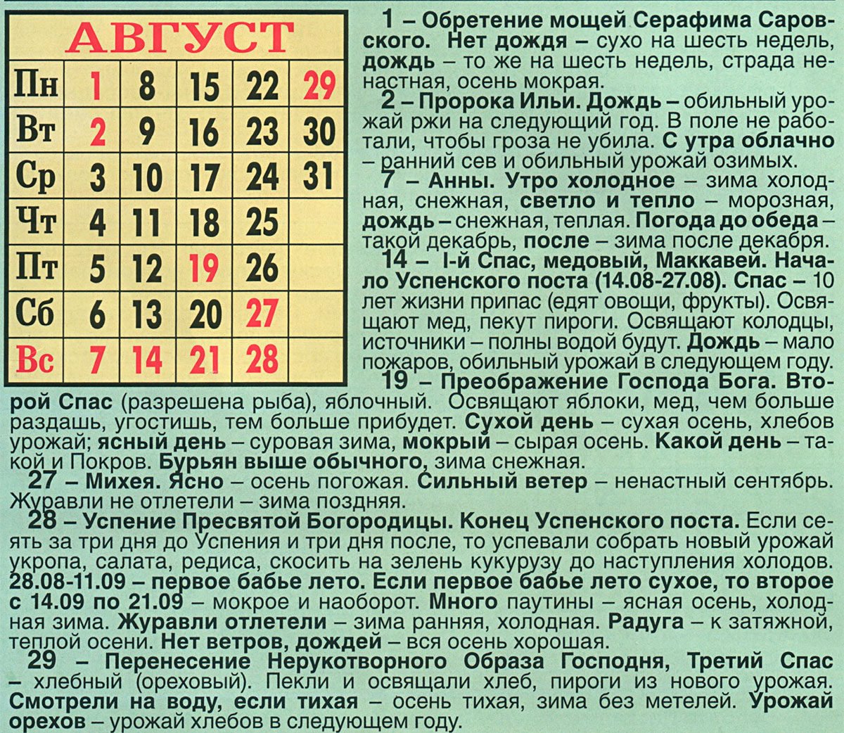 Погодные приметы: